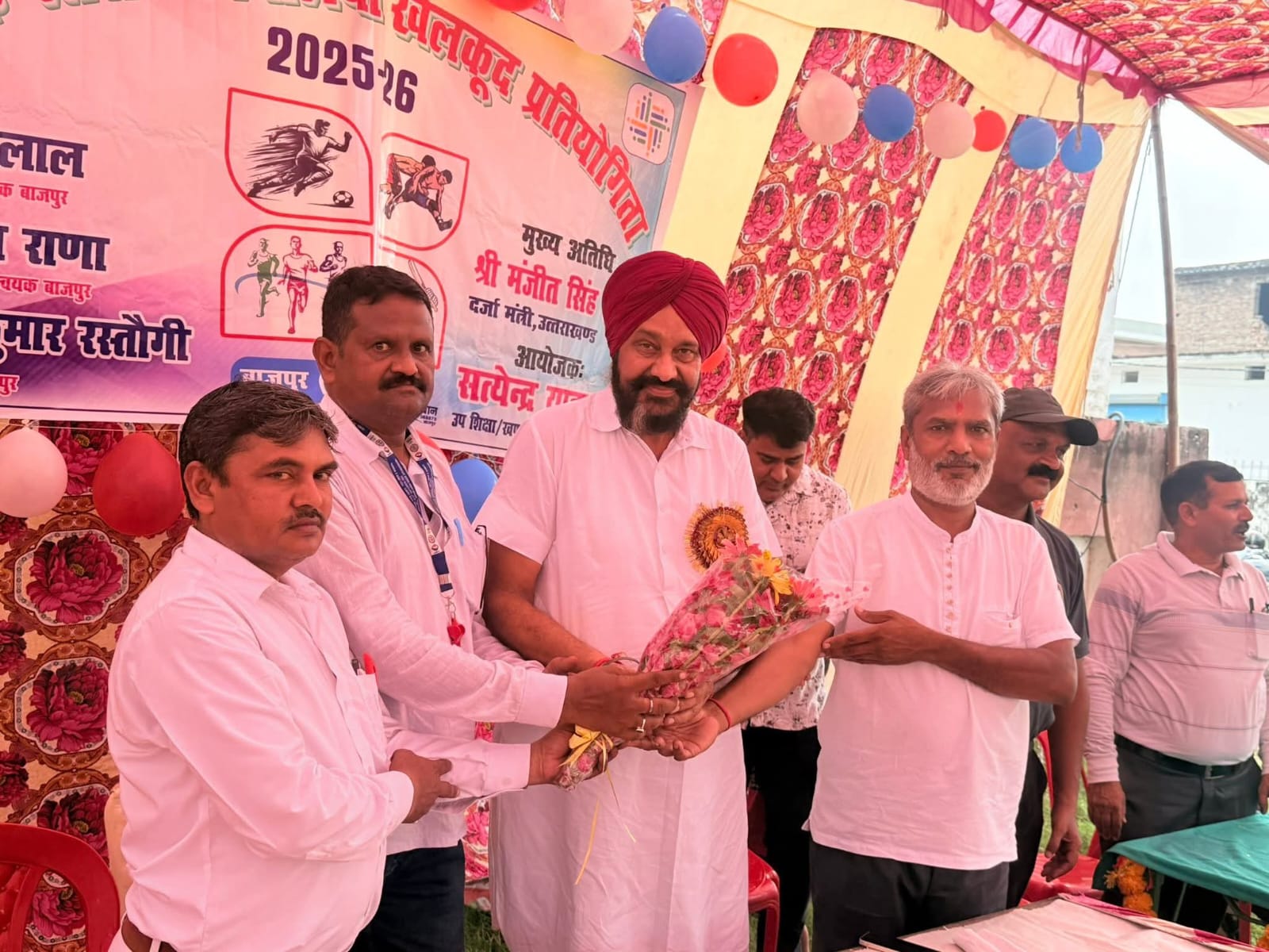 बाजपुर स्टेडियम में आज ब्लॉक स्तरीय विद्यालयी खेलकूद प्रतियोगिता का आयोजन बड़े उत्साह और उमंग के साथ सम्पन्न हुआ। इस अवसर पर मुख्य अतिथि के रूप में राज्य गन्ना मंत्री श्री मंजीत सिंह राजू जी ने प्रतिभाग किया और बच्चों का उत्साहवर्धन कियाप्रतियोगिता में विभिन्न ग्रामों से आए बालक-बालिकाओं ने प्रतिभा और जोश से भरपूर प्रदर्शन कर सभी का मन मोह लिया। दौड़ प्रतियोगिता में उत्कृष्ट प्रदर्शन करने वाले बच्चों को प्रथम, द्वितीय एवं तृतीय स्थान पर पदक प्रदान कर सम्मानित किया गया। मंत्री जी ने सभी बच्चों को आशीर्वाद देते हुए कहा कि “बच्चे ही देश का असली भविष्य हैं और उनके सर्वांगीण विकास के लिए इस प्रकार की प्रतियोगिताएँ अत्यंत आवश्यक हैंकार्यक्रम का सफल संचालन श्री सत्येन्द्र यादव (उप शिक्षा अधिकारी/खण्ड शिक्षा अधिकारी, बाजपुर) के निर्देशन में हुआइस अवसर पर नैनीताल जिले के प्रभारी श्री राजेश कुमार जी, श्री डोरीलाल जी, श्री पवन राणा जी, श्री पंकज कुमार रतूड़ी जी सहित अनेक गणमान्य अतिथि, शिक्षक-शिक्षिकाएँ, छात्र-छात्राएँ एवं खेल प्रेमी बड़ी संख्या में उपस्थित रहे।